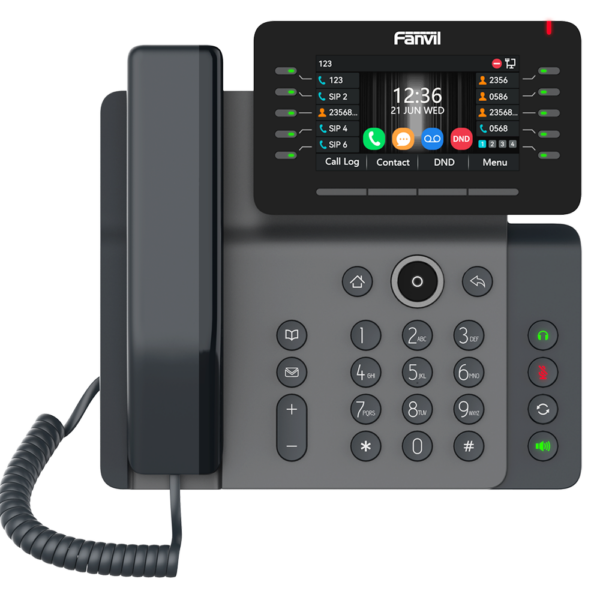 Fanvil V63 | Prime Business IP Phone with 2.8″ Color Screen | 6 SIP Lines & 6‑Way Conference | Dual Gigabit PoE | USB & Expansion Ready