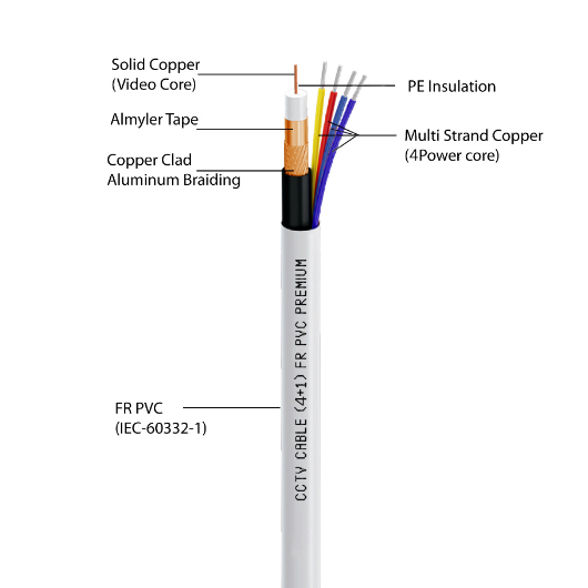 D-Link DCC-WHI-90-4 Strong CCTV 41 Premium Copper Braided Hybrid Cable, 4 Power Cores