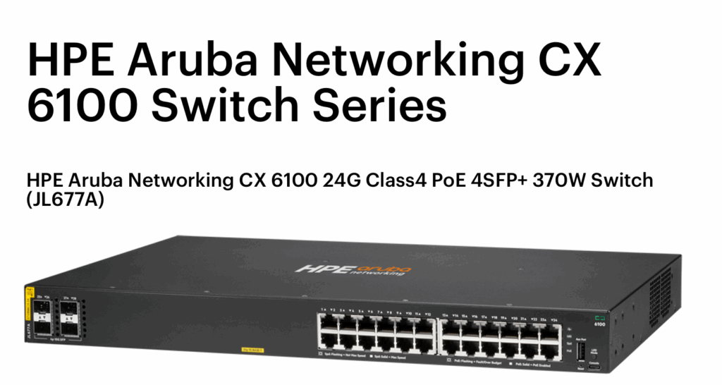 🔹 Aruba CX 6100 & 6200 SeriesLayer 2 & Layer 3 switches with cloud management.