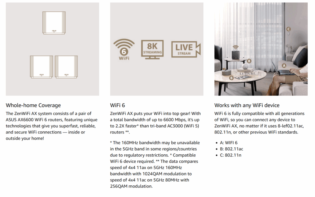 Product SegmentAX6600 Tri-Band (574 + 1201 + 4804 Mbps), up to 5500 sq. ft. coverage (2-pack)