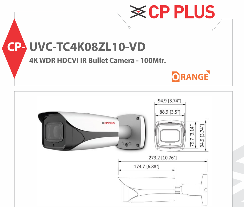 This model offers a robust infrared (IR) illumination range of up to 100 meters for enhanced night vision capability. Built to withstand harsh outdoor environments, the CP PLUS CP-UVC-TC4K08ZL10-VD is IP67 rated for dust and water resistance.