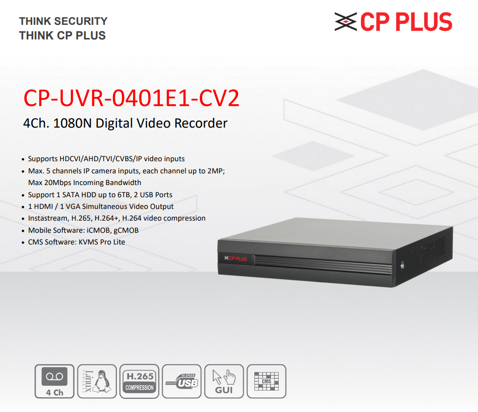 The CP PLUS CP-UVR-0401E1-CV2 combines superior technology with robust security features, making it the ideal choice for reliable and scalable surveillance solutions.
