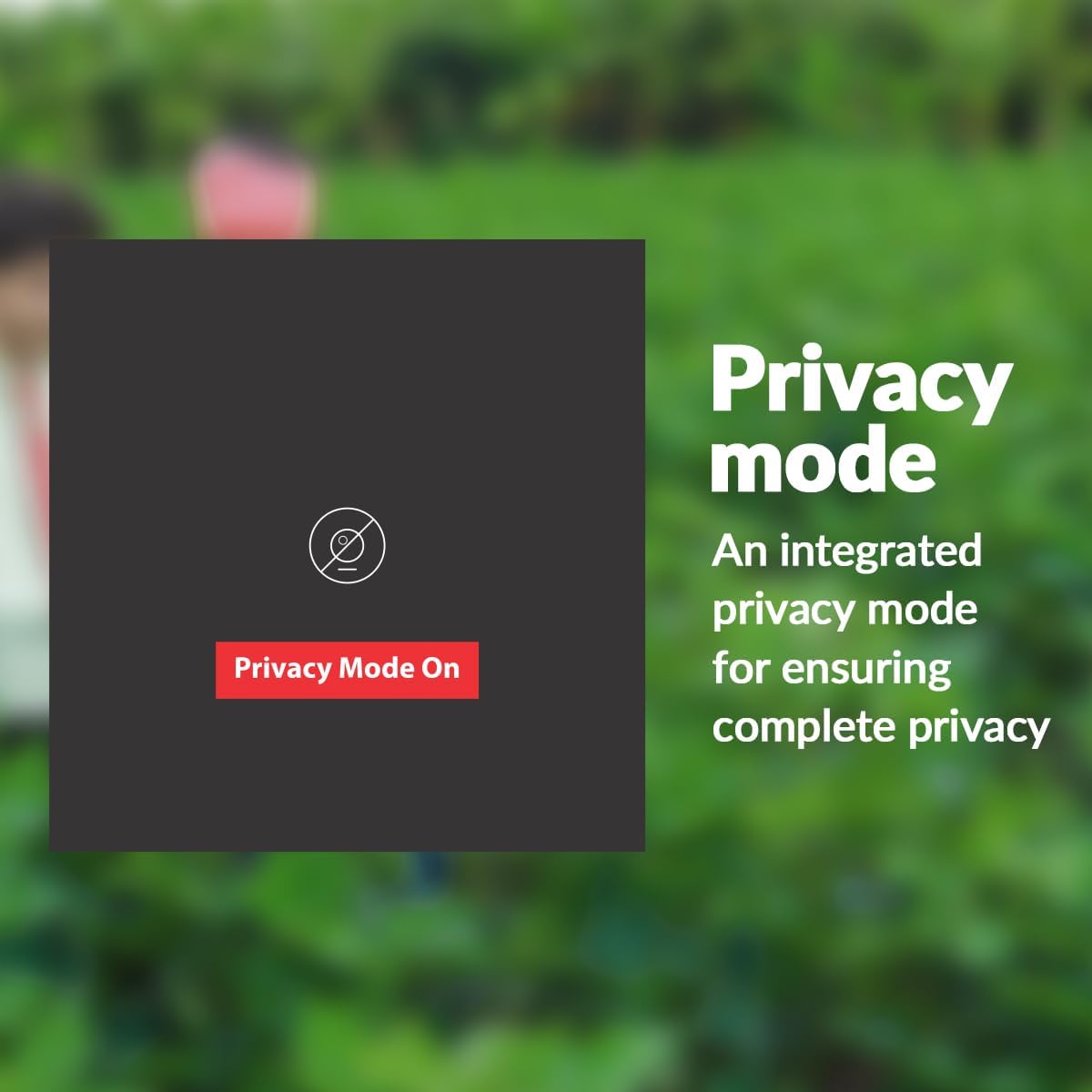 Privacy mode allows users to block recording and viewing of selected areas within the camera’s coverage, supporting controlled monitoring where partial privacy is required. Two-way audio enables live communication through the camera using the connected app.