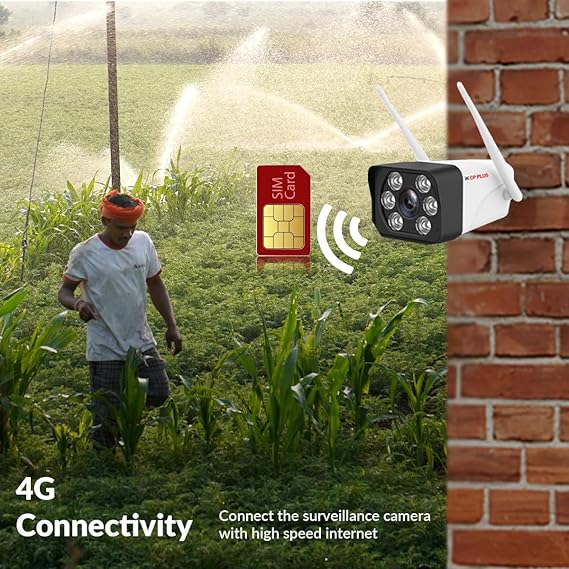 The CP PLUS CP-V33GN is an outdoor bullet security camera designed for remote video surveillance using a 4G SIM connection. It records video at 3MP resolution (1296p) and is intended for locations where wired internet or Wi-Fi access is unavailable.