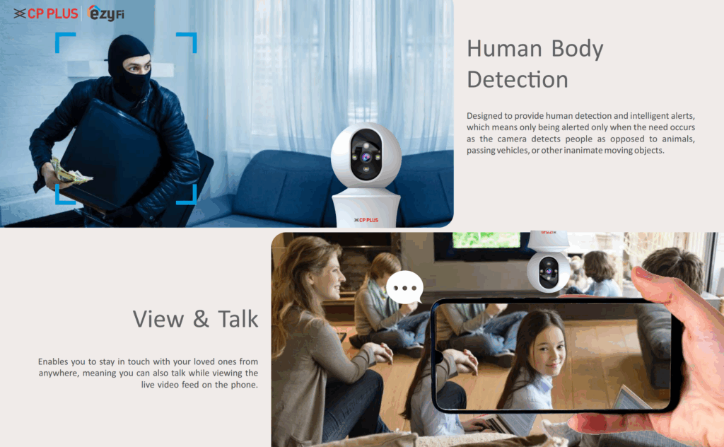 • Crystal-Clear Intelligence: With advanced models featuring starlight sensors, AI-based human/vehicle detection, and high-resolution imaging, CP Plus provides not just footage, but actionable insights for proactive security.