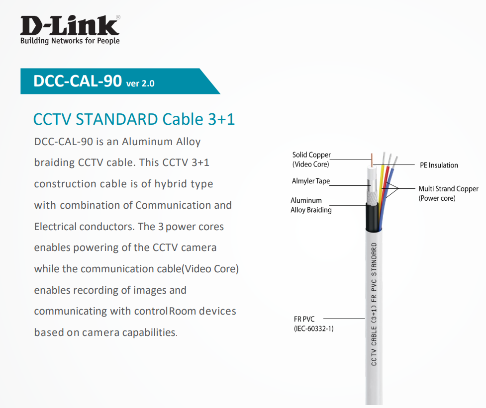 D-Link DCC-CAL-90 Powerful CCTV Cable – Hybrid Construction, Flame Retardant, Shielded Communication