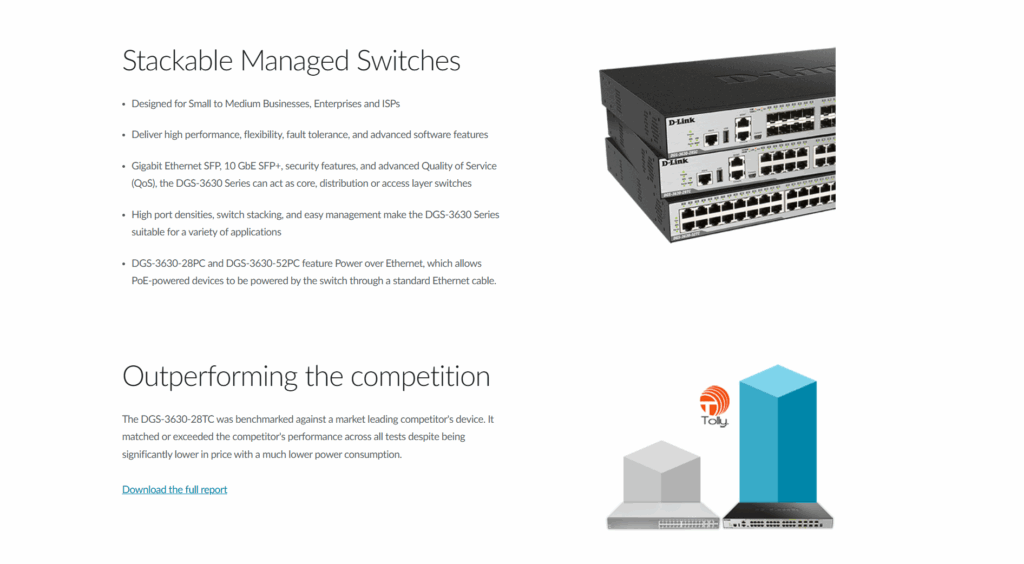 D-Link’s Gigabit, PoE, and Managed Switches are ideal for businesses, ISPs, and data centers looking for high-speed networking with advanced management features: