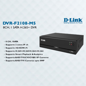 D-Link DVR-F2108-M1H5 Powerful 8CH H.265 2MP Lite CCTV DVR with Smart Playback and Cloud Storage Support