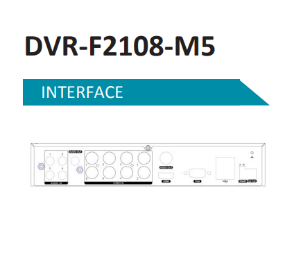 Designed to accommodate a single SATA HDD up to 10TB, the DVR-F2108-M5 offers ample storage for extensive surveillance footage. It features both HDMI and VGA video outputs with resolutions up to 4K, facilitating superior display clarity on multiple monitors. The DVR includes intelligent playback options like smart playback analytics and event picture playback, streamlining footage review.