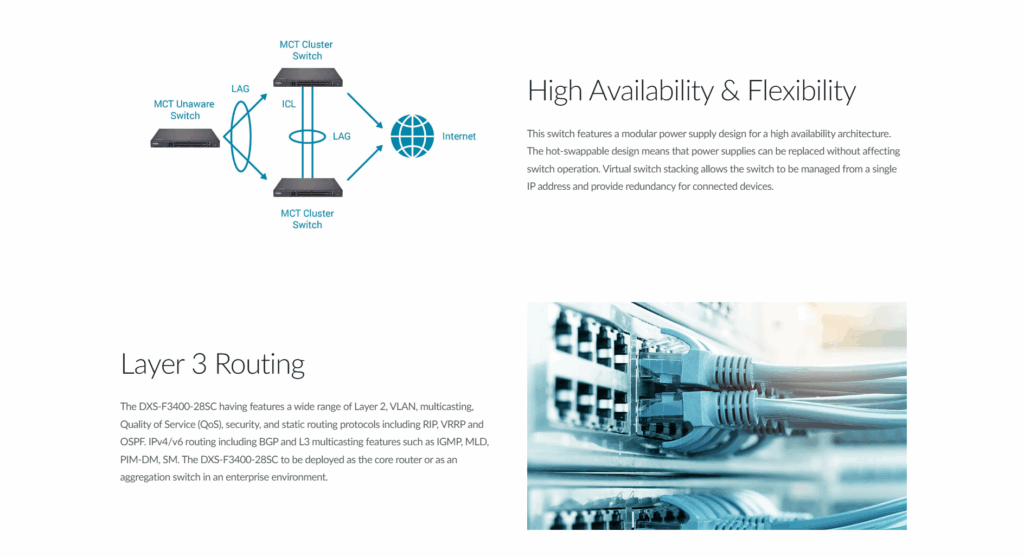 Whether deployed as a core, aggregation, or distribution switch, the D-Link DXS-F3400-28SC is built to meet the demands of next-generation enterprise networks with superior flexibility, performance, and reliability.