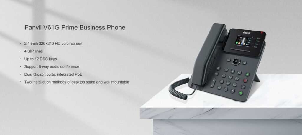 The Fanvil V61G is a prime business IP phone that combines elegant design with robust performance for professional voice communication. Targeted at office environments, call centers, and small‑to‑medium enterprises, the V61G delivers crystal‑clear audio, flexible connectivity, and an intuitive user experience without unnecessary complexity.