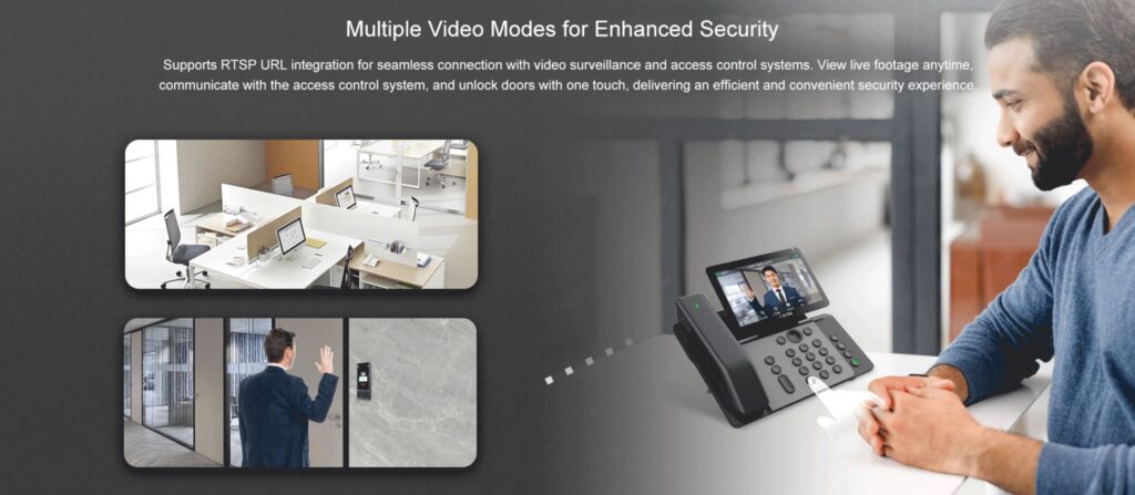 Up to 112 Virtual DSS Keys: One‑touch DSS keys on the 7″ touch screen, programmable for BLF, speed dial, call pickup, shared line appearance .