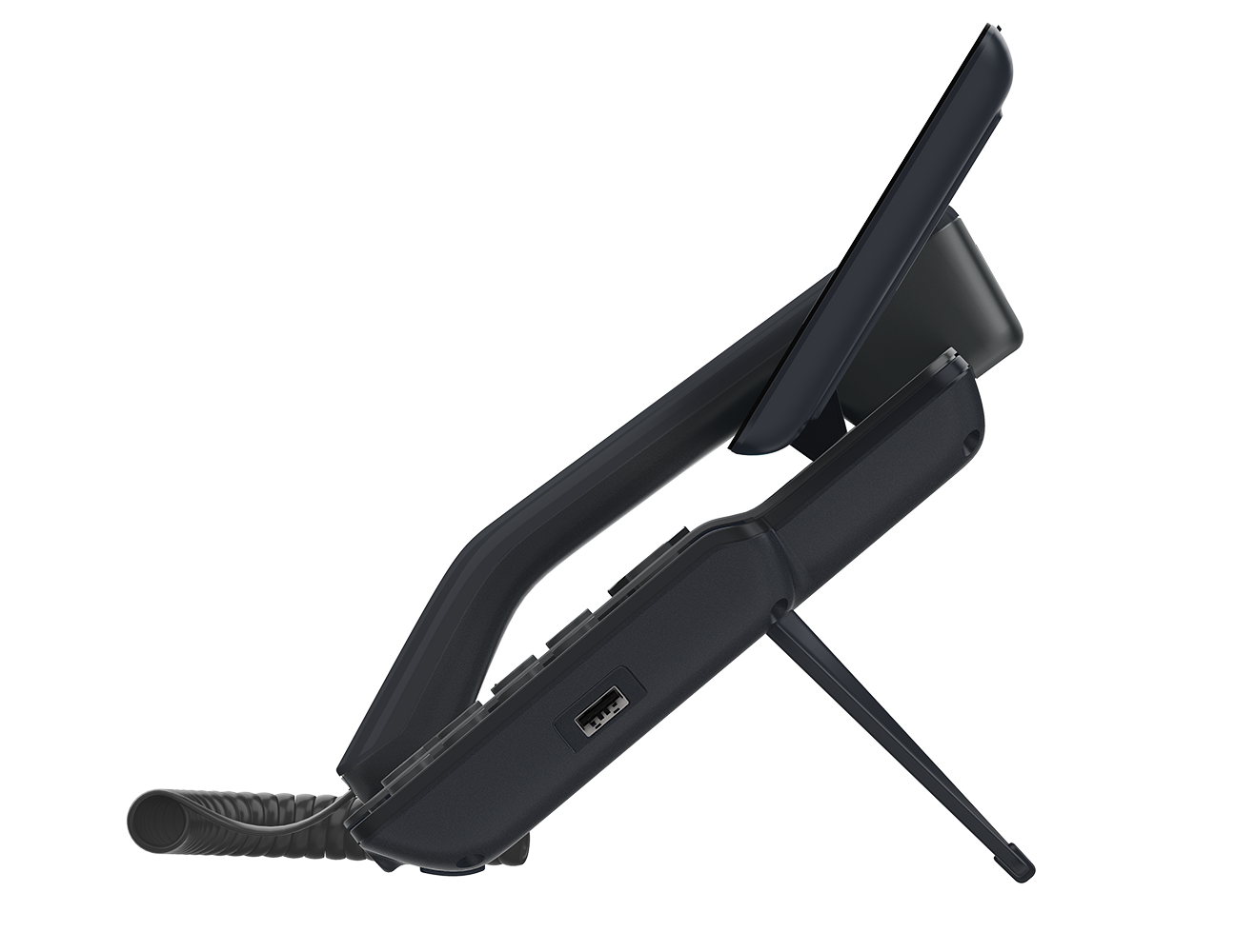 The USB 2.0 Type‑A port supports USB flash drives for call recording, configuration backup/restore, firmware updates, and USB headsets.