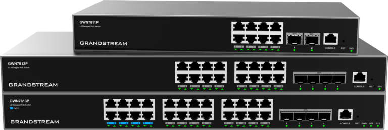 Grandstream GWN7816 comess with redundant power support, rack-mount design, and intelligent cooling (4 fans), the GWN7816 ensures long-term reliability, making it an ideal backbone for enterprises, campuses, ISPs, and data centers.