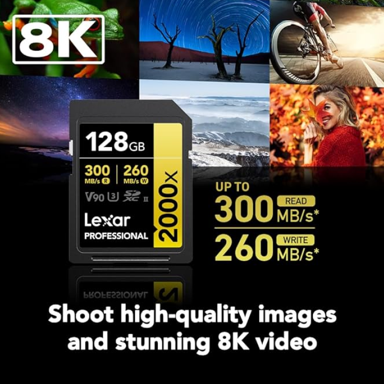 Lexar 128GB Professional 2000x is perfect for professional workflows, this card supports long-duration recording, fast offloading, and continuous RAW shooting without buffer delays, making it a reliable choice for filmmakers, content creators, and photographers.