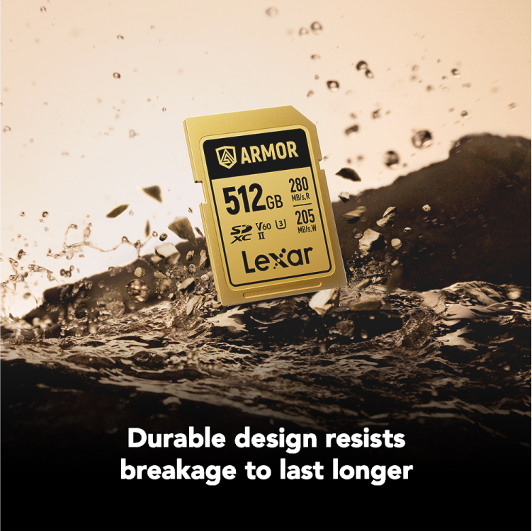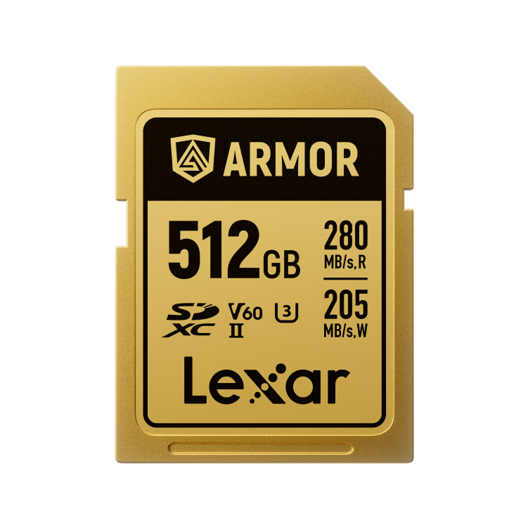Lexar 512GB ARMOR GOLD comes with up to 280MB/s read and 205MB/s write speeds, the card supports smooth 6K video recording and fast continuous burst photography, ensuring your workflow stays efficient from capture to post-production. A ribless design, the absence of a write-protect switch, and permanent laser-engraved markings enhance durability and eliminate common failure points.