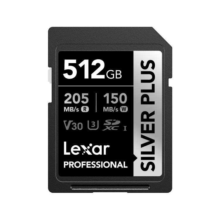 The Lexar 512GB Professional SILVER PLUS SDXC UHS-I card is a high-performance storage solution designed for DSLR cameras, mirrorless cameras, camcorders, and professional creators. With read speeds up to 205 MB/s and write speeds up to 150 MB/s, it enables fast file transfers and smooth capture of high-resolution photos and 4K video.