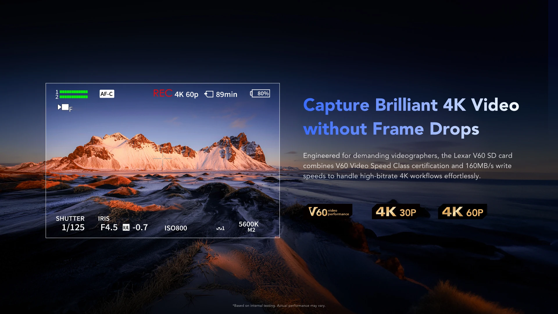 Record smooth 4K video without dropped frames using V60 performance.