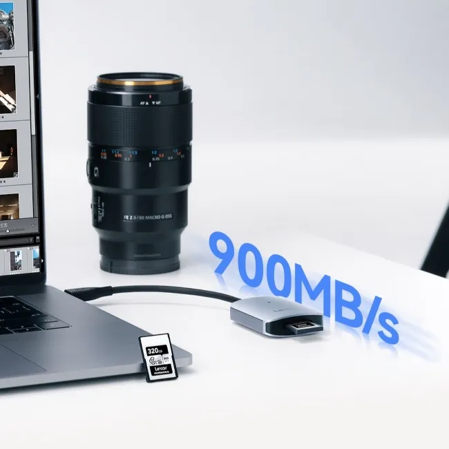 This compact and robust Lexar CFexpress Type A Reader is engineered to speed up your entire post-production process. With transfer speeds reaching up to 900MB/s, it allows you to offload 8K videos and large files quickly and efficiently.