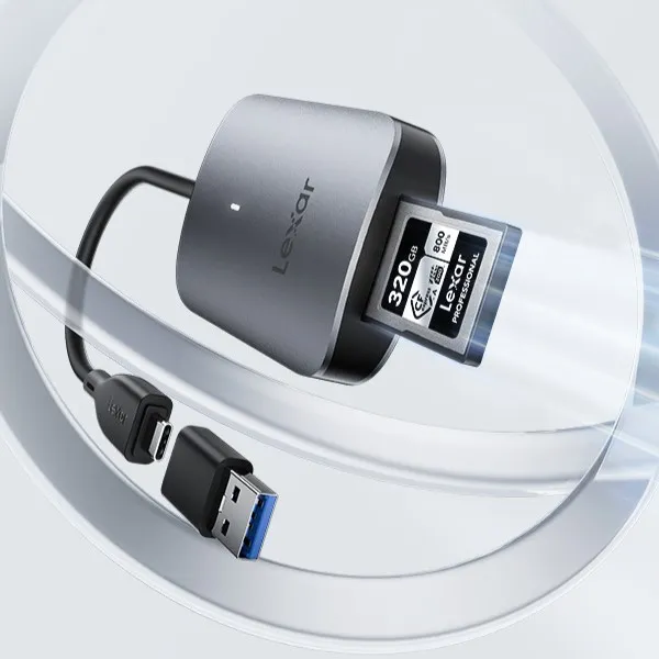Lexar CFexpress Type A Reader is designed to accelerate professional workflows with blazing-fast 900MB/s transfers, USB-C/USB-A compatibility, and a durable metal housing built for heavy-duty use.