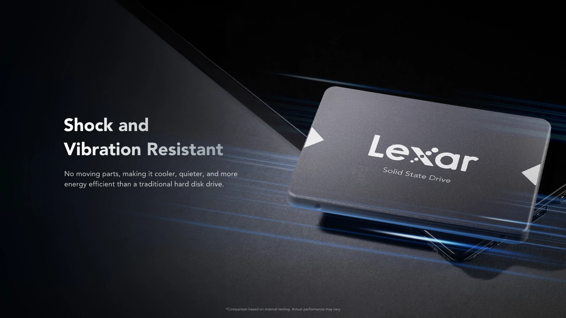 The Lexar NS100 512GB is a 2.5” SATA III internal solid-state drive intended for replacing traditional hard drives in compatible laptops and desktops.