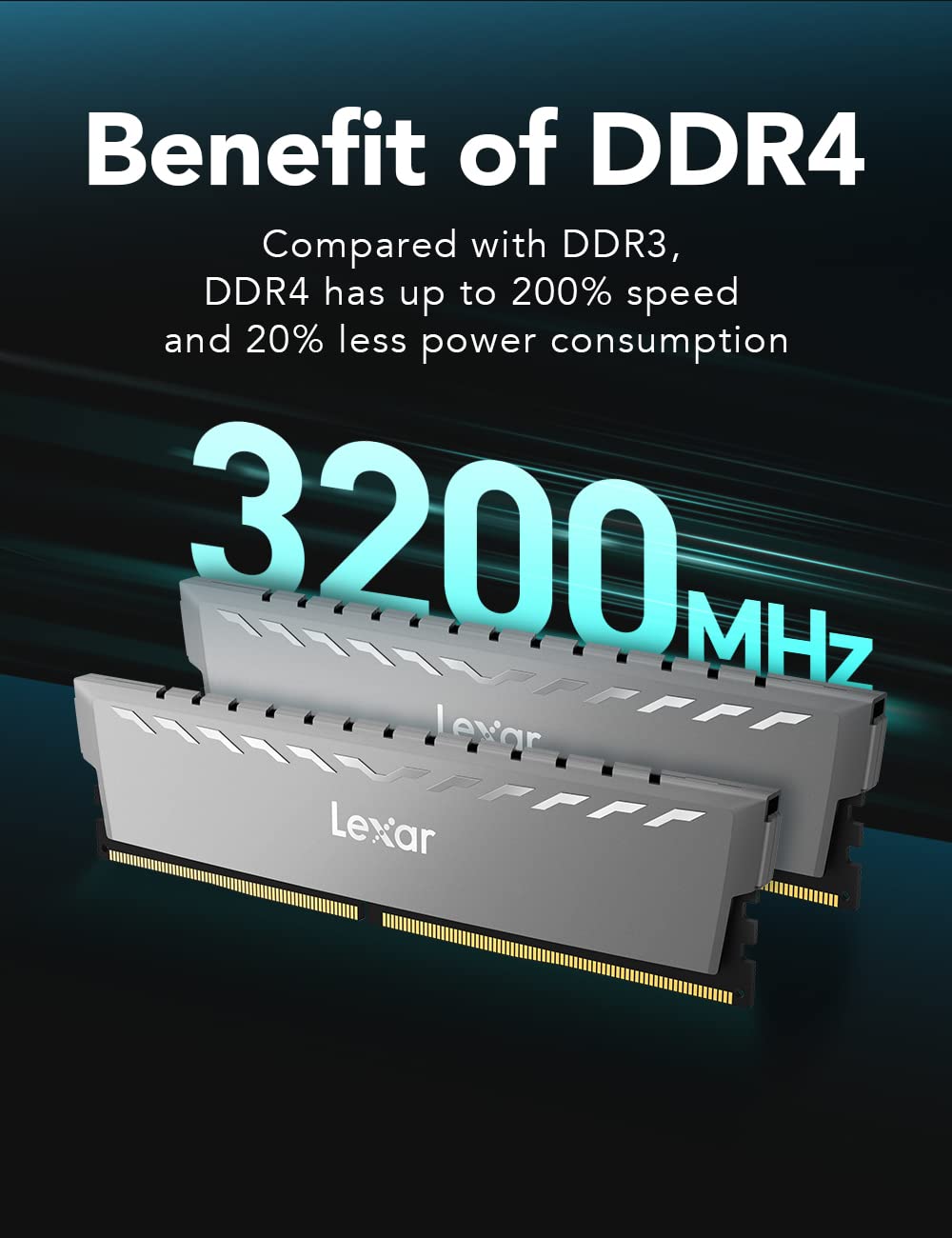 Lexar Thor 32GB (16GBx2) DDR4 3200MHz desktop memory delivers powerful dual-channel performance, high-speed XMP 2.0 support, advanced aluminum cooling, and reliable stability for professional workstations and high-end gaming PCs.