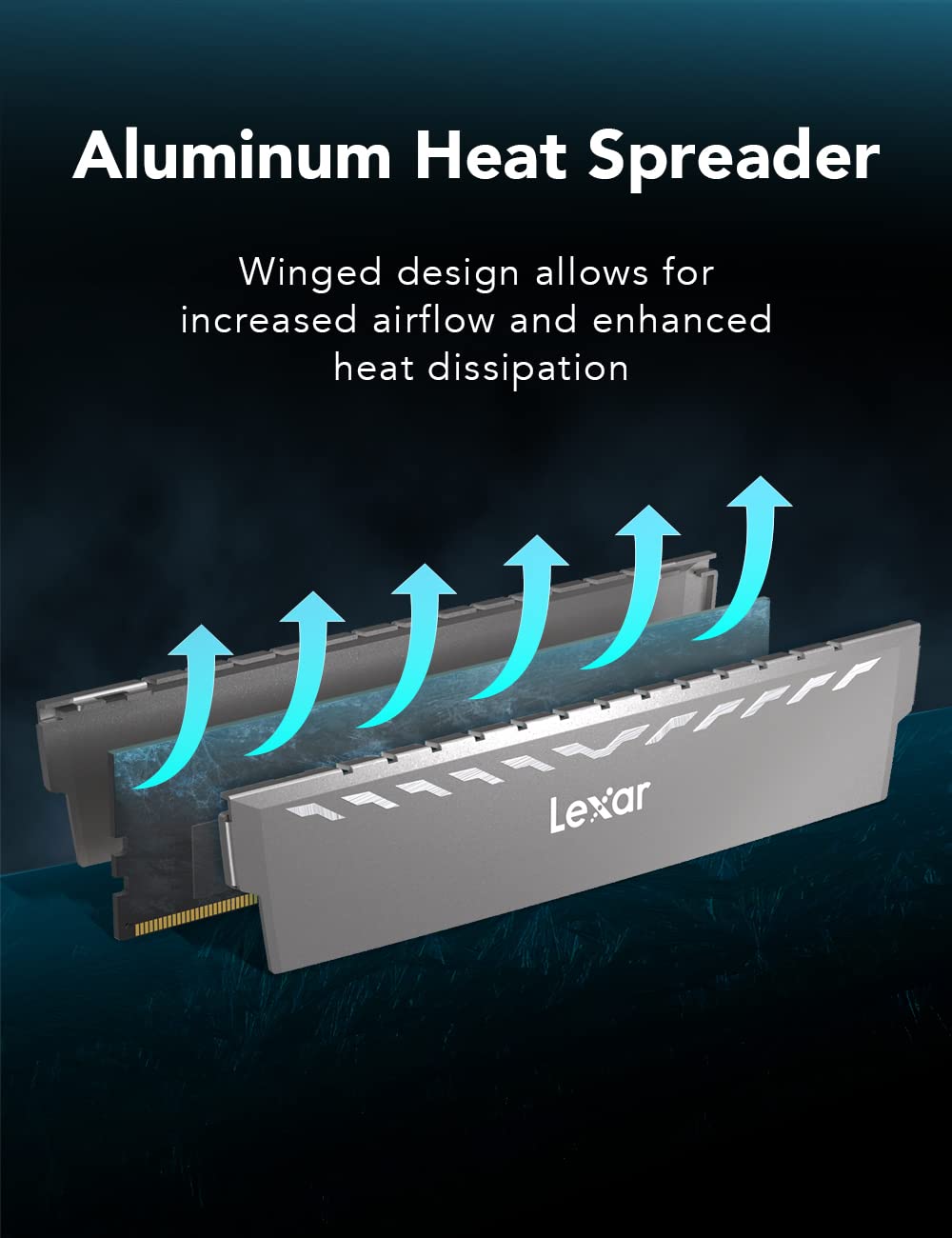 • Premium Aluminum Heat Spreader – Space gray, winged-design heat spreader enhances airflow and thermal dissipation