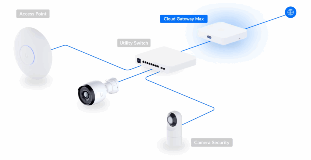 🔹 Scalable Networking – Expand seamlessly with UniFi Switches, Gateways & Cloud Controllers.