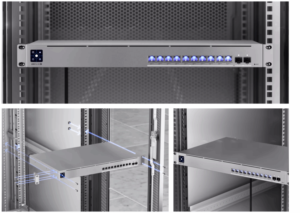 Ubiquiti USW-Pro-XG-10-PoE – Professional 10-Port 10G Layer 3 Etherlighting Switch with PoE+++ (400W), 2×10G SFP+ Uplinks, Touchscreen LCD & Redundant Power Support