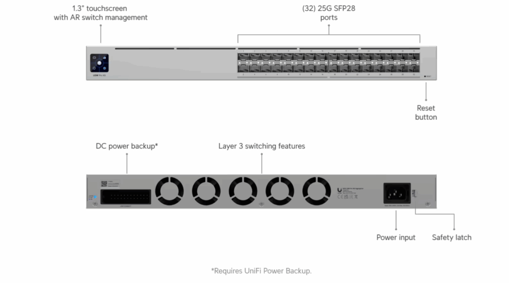 Ubiquiti USW-Pro-XG-Aggregation – 32-Port 25G Layer 3 Managed Aggregation Switch with Etherlighting, 1.6Tbps Switching Capacity & Redundant Power Support