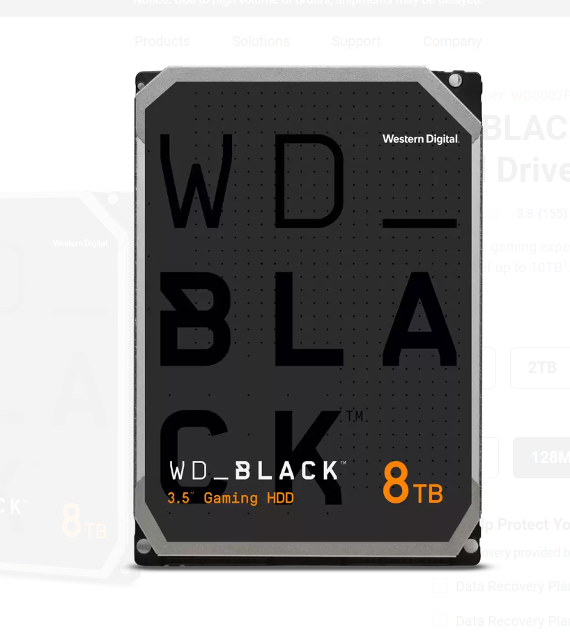 WD BLACK 8TB | WD8002FZWX  Designed to meet the demands of high-performance PC systems, desktops, all-in-one PCs, and gaming rigs, this drive also boasts Western Digital’s Dynamic Cache Technology, which improves caching algorithms in real time.