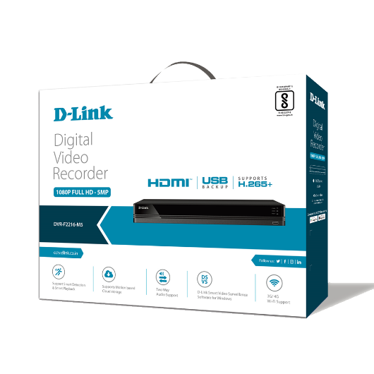 D-Link DVR-F2116-L1H5 16CH 1080P Powerful Lite DVR with Advanced H.265+ Compression, 2MP Camera Support, Cloud Storage & 3G/4G Wi-Fi